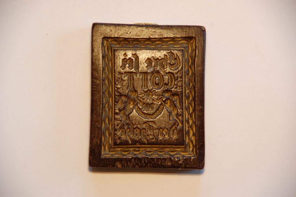 Spruch: "Ehre sei Gott" Maße ca. 5,5 x 6,5 cm